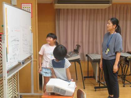 音楽の時間、いろいろな音を聞いて、どのように感じるか話し合いました。