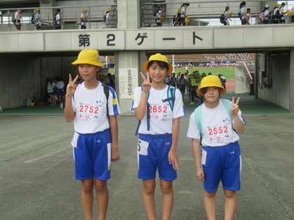 競技が終わり、お互いのがんばりをたたえ合いました。 他校との児童とも交流を深め、とても有意義な半日でした。