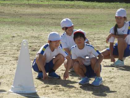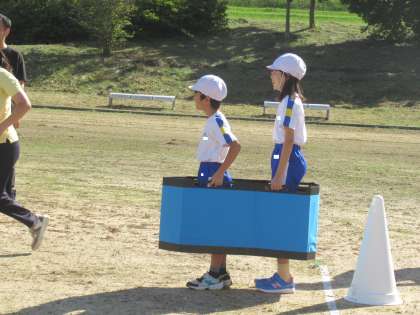 親子競技に取り組みました。説明を聞いている子供たちも楽しそうです。