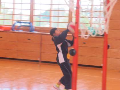 この日は、バスケットゴール対決でした。赤・白対抗戦で盛り上がりました。