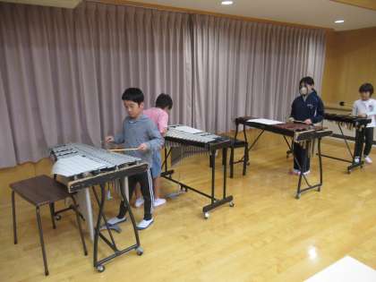 学習発表会では、全校で校歌の合奏を行います。どの楽器ができそうか、お試しをしました。