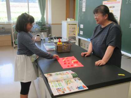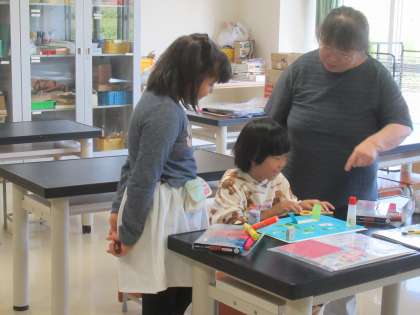 カッターを慎重に使って、作品を作っています。道具を上手に使って、新しい表現方法を身に付けています。