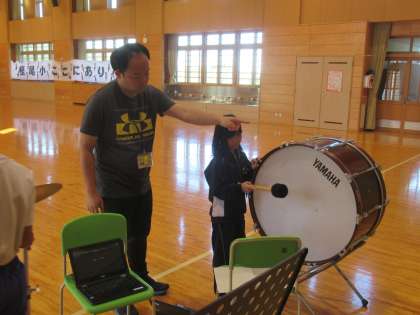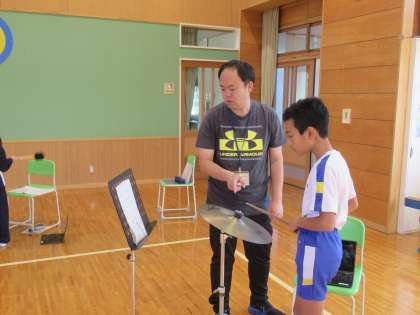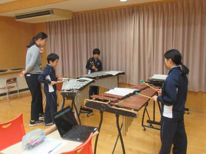 パソコンで全体の演奏を聴きながら、自分の楽器を合わせています。