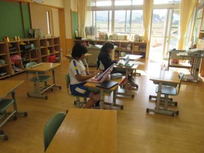 全校合奏のパート練習、各自でがんばっています。だんだん上達しています。