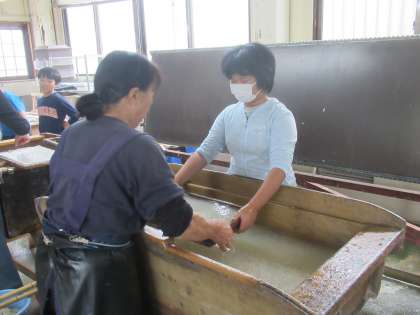 型に整えましたが、水分を含んでまだまだ和紙のようには見えません。どのようになるのでしょうか?