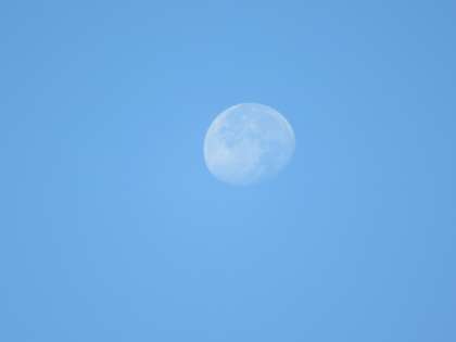 朝日の反対側には、沈んでいく月が見られました。黒瀬谷の美しい風景です。