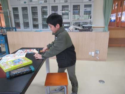 かなづちを使い、くぎを打ちました。トントン、トントンと集中して行っていました。