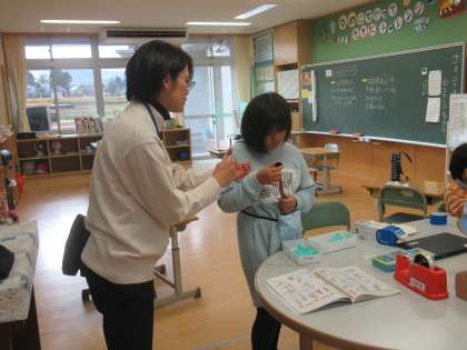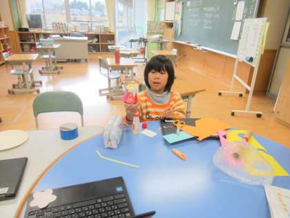 生活科でのおもちゃづくり、とても盛り上がっていました。道具をくふして、願いが表れるよう努力しています。