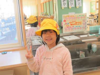 技セブンのバッジを帽子につけてもらいました。とてもうれしそうです。