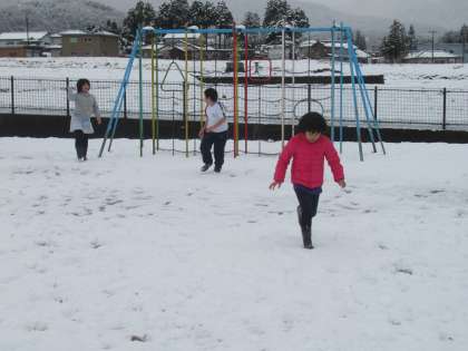 子供たちは雪が降るのを楽しみにしていたようで、休み時間グラウンドへ飛び出していました。寒い中、元気に雪遊びをしていました。