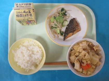 今日から3学期の給食がはじまりました。今日のメニューは、ごはん、ぎゅうにゅう、あつあげのにしきとじ、ふくらぎのさいきょうやき、しおナムルです。あたたかい給食をたべることができることに、かんしゃです。