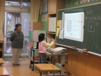 算数の時間、問題の解き方について説明します。自分の考えを分かりやすく伝えることができました。