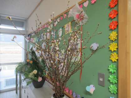 啓翁桜を地域の方にいただきました。寒中ではありますが、一足早い春を感じます。