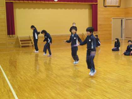 なわとび大会に向けて 公開日 2024/01/22 更新日 2024/01/22 学校風景 2月になわとび大会を行います。それに向けて練習をしました。それぞれの得意な跳び方をさらに磨きをかけて、がんばってほしいと思います。