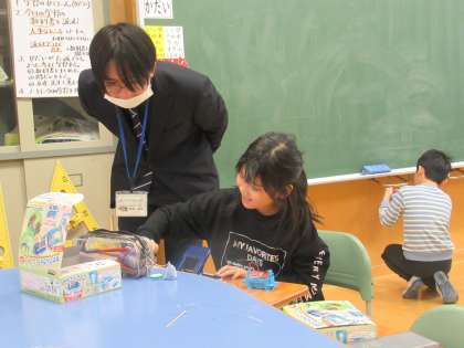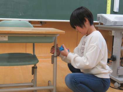 理科では、身の回りのもので電気を通すものについて調べています。「電気が通った!」とうれしそうな声が聞こえてきました。