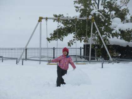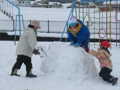 小グラウンドには、30センチほどの雪が積もっていました。子供たちは、大喜びで雪遊びをしていました。