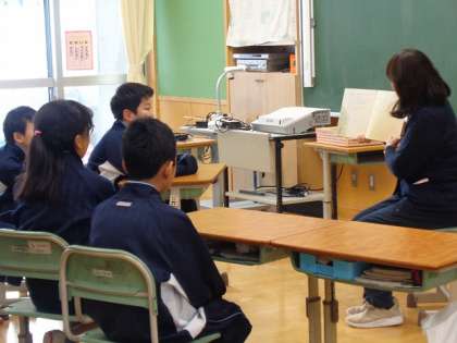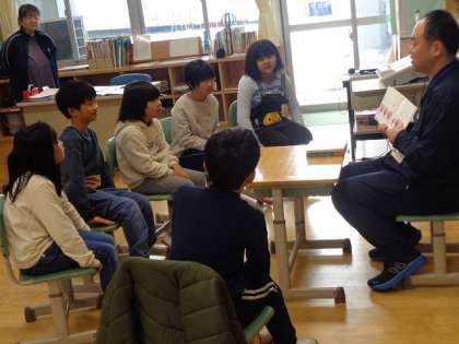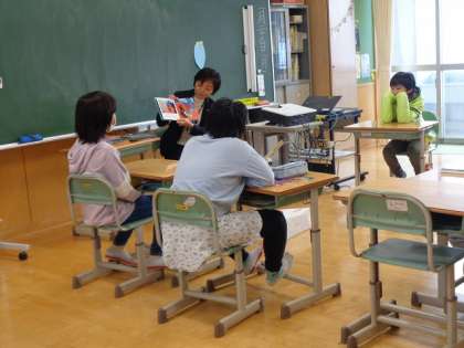 担任以外の教職員が、各教室に行き、おすすめの本を読み聞かせします。
