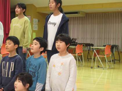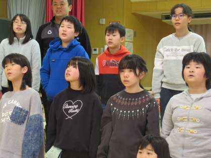 子供たちは、言われることをよくききながら、楽しそうに練習していました。最後に「ずいぶん、いい声がでるようになったね」とほめていただきました。閉校式や卒業式に向けてこの後もがんばっていきたいと思います。