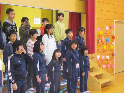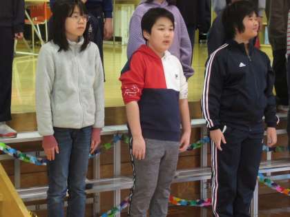 閉校式の練習を行いました。それぞれが思いを込めてメッセージを言います。しっかりと言えるようがんばっています。