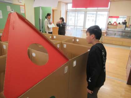 学校に迷路のコースができました。さっそく子供たちは迷路の中に入って楽しんでいました。樫尾小での思い出がまた1つできました。