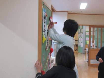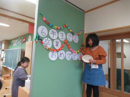 閉校式、卒業式に向けて、学校の飾り付けを行っています。子供たちはとても楽しそうでした。