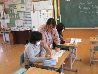 外国語活動の時間、英語で手紙を書きました。どんなことを書けばよいか考えて書きました。