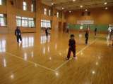 下学年の体育では、ラクビー型ボールを使ってキャッチボールをしました。普段の丸い...