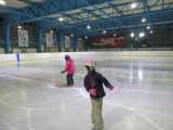 スケートリンクに出てから、まず転び方と立ち上がり方を教わりました。子供たちは、...
