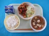 今日のメニューは、ごはん、牛乳、さかなとまめのカレーあげ、れんこんサラダ、とう...