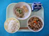 今日のメニューは、ごはん、ぎゅうにゅう、さかなとじゃがいものえごまみそからめ、...