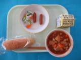 今日の給食は、コッペパン、牛乳、アスパラサラダ、ポトフ、選択こんだてとして、ぶ...