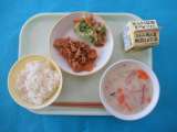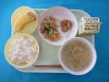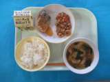 今日のメニューは、ごはん、ぎゅうにゅう、さかなのあまみそあえ、ごもくにまめ、う...