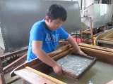 型に整えましたが、水分を含んでまだまだ和紙のようには見えません。どのようになる...