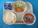 今日のメニューは、ごはん、牛乳、さかなとまめのカレーあげ、れんこんサラダ、とう...