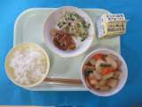 今日のメニューは、ごはん、ぎゅうにゅう、かんとうだき、さかなのくろずあん、もや...