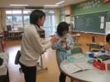 水の温度を変えてとかすとどれくらいとける?熱心に実験に取り組んでいました。