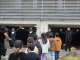 巣立ちの式です。6年生が学校にエールと万歳を行ってくれました。
