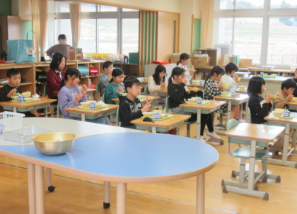 5年生は、3・4年生といっしょに給食をいただきました。6年生が卒業し寂しくなり...