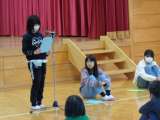 3年生が、1・2年生に英語のクイズ劇を発表しました。3年生は楽しそうに英語劇を...