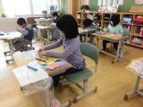 2年生は、図工で「光のプレゼント」の学習をしています。透明フィルムにいろいろな...