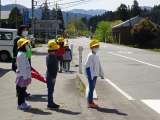 1・2年生は、歩道を歩いて移動し、横断歩道の渡り方を確かめました。