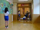 お昼休みは、ファミリーで遊びました。 だるまさんがころんだをしています。