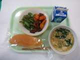 今日の献立は、とり肉とレバーのケチャップからめ、くきわかめサラダ、にらたまスープ...