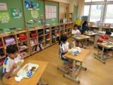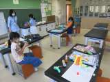 みんなが本に親しみ、たくさん本を読むようにと、しおりづくりをがんばっています。