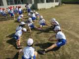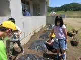 久しぶりに雲一つ無い晴天の朝になりました。 高学年が畑の野菜のお世話をしています...