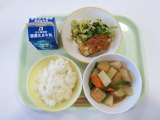 今日の献立は、魚のなんばんづけ、いり大豆和え、かんとうだき、です。