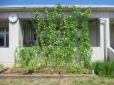 学校のヘチマがとても大きく成長しています。屋根まで伸びています。また、ミニ田ん...