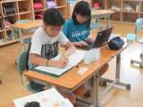 3年生は、理科で学校の周りの植物について調べていました。写真に撮ったり手触りを...