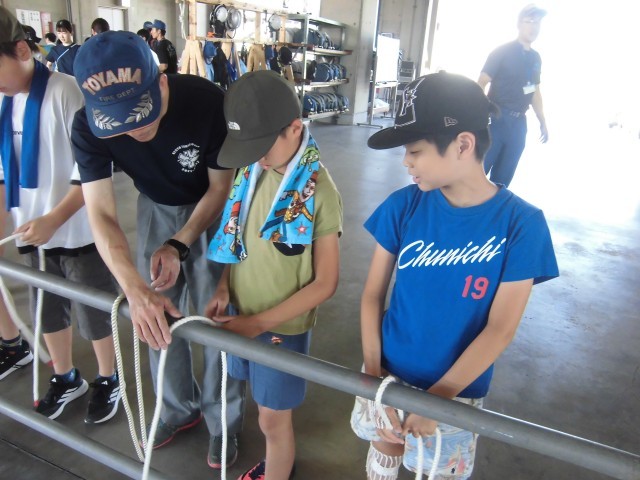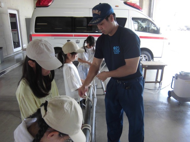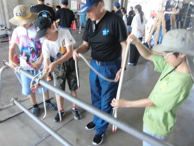 活動の様子です。災害時に使える丈夫な結び方を習いました。