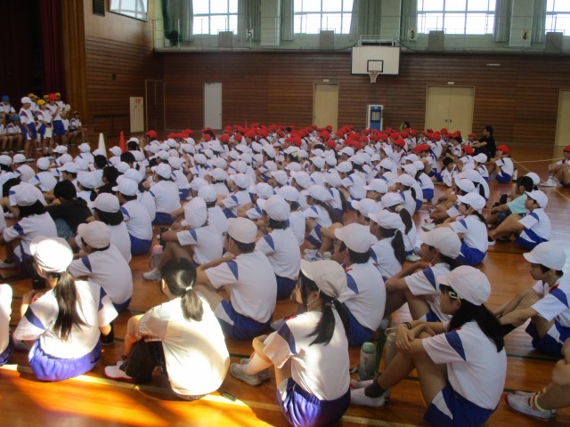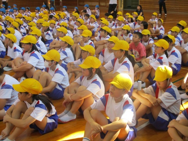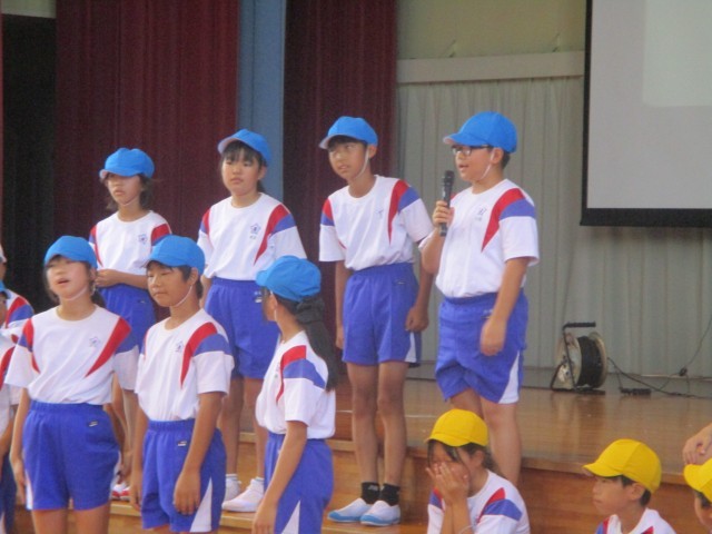 行う種目や団長、応援リーダー等の紹介がされ、5年生をはじめとして子供たち皆が真剣に参加していました。